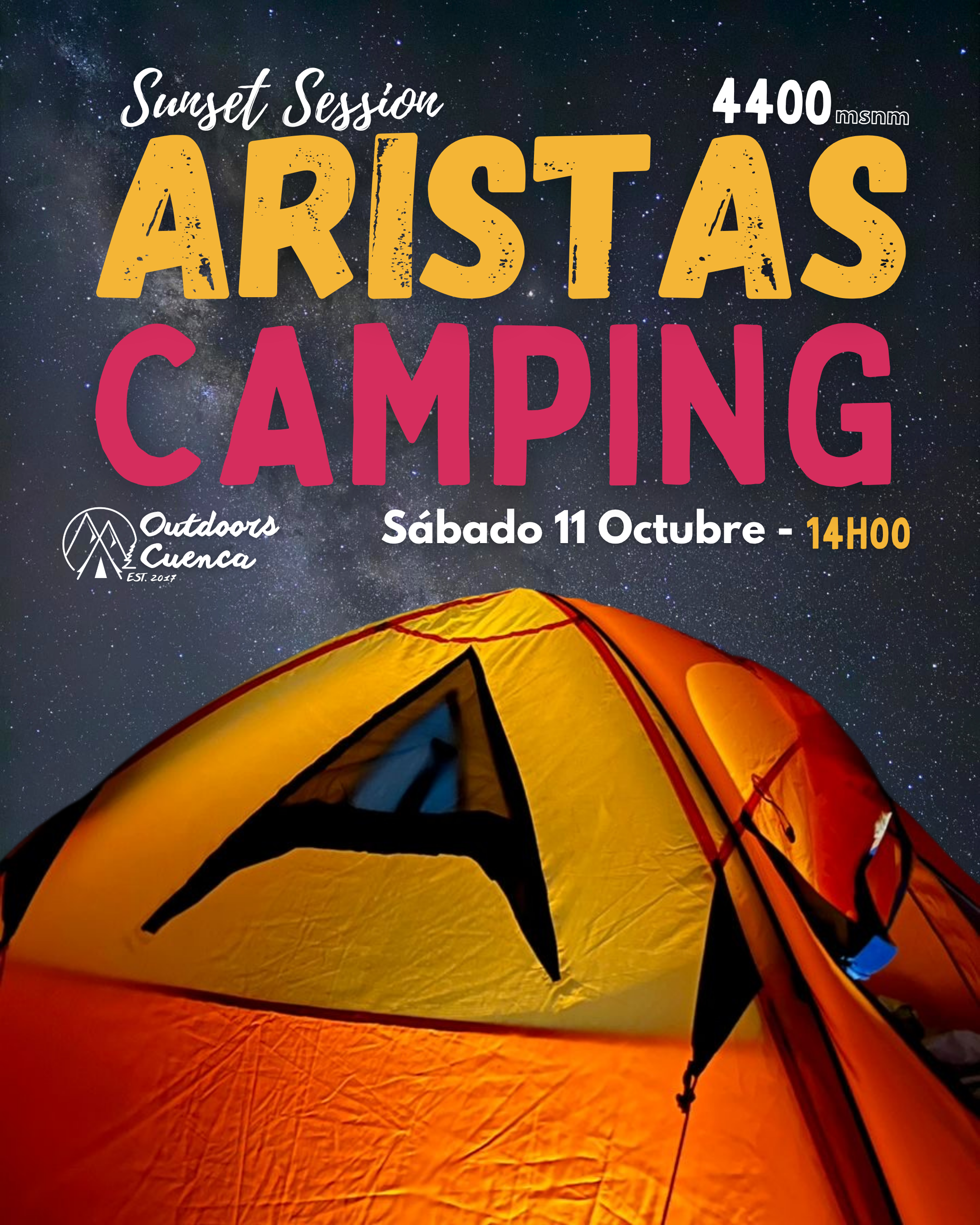 Te invitamos este sábado a vivir una experiencia de ALTURA Camping Arisatas + Sunset Session & Coffee desde un SPOT NATURAL único sobre 4400 msnm rodeados de naturaleza y lagunas con paisajes mágicos. Este es un plan solo para quienes disfrutan y buscan vivir una experiencia de montaña en estado puro. Lleva tu jarro nosotros cafecito caliente para compartir en la montaña con la mejor vista junto a Outdoors Cuenca.